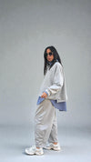 E PANTALONE AD OVETTO MODELLO AMPIO CON ELASTICO IN VITA E TASCHE LATERALI