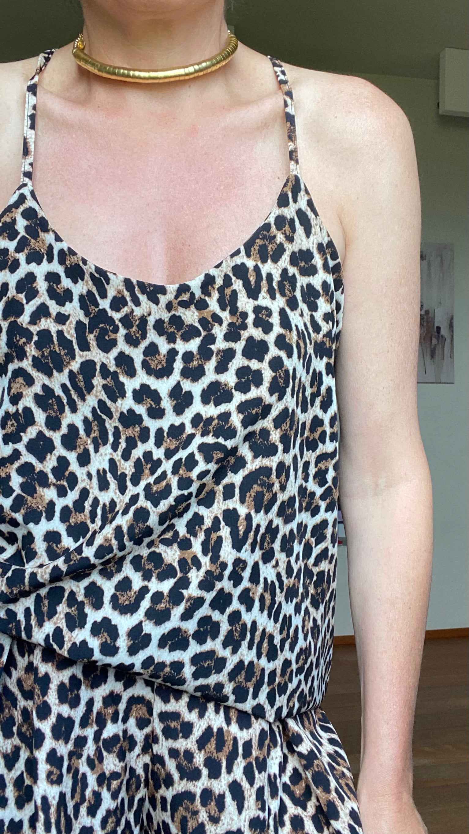 CANOTTA IN RASO LUCIDO  MODELLO A VOGATORE  MIS UNICA  STAMPA LEO  BRETELLA FINA  SCOLLO A V DAVANTI  VESTE DALLA 40 ALLA 46 NUOVI ARRIVI