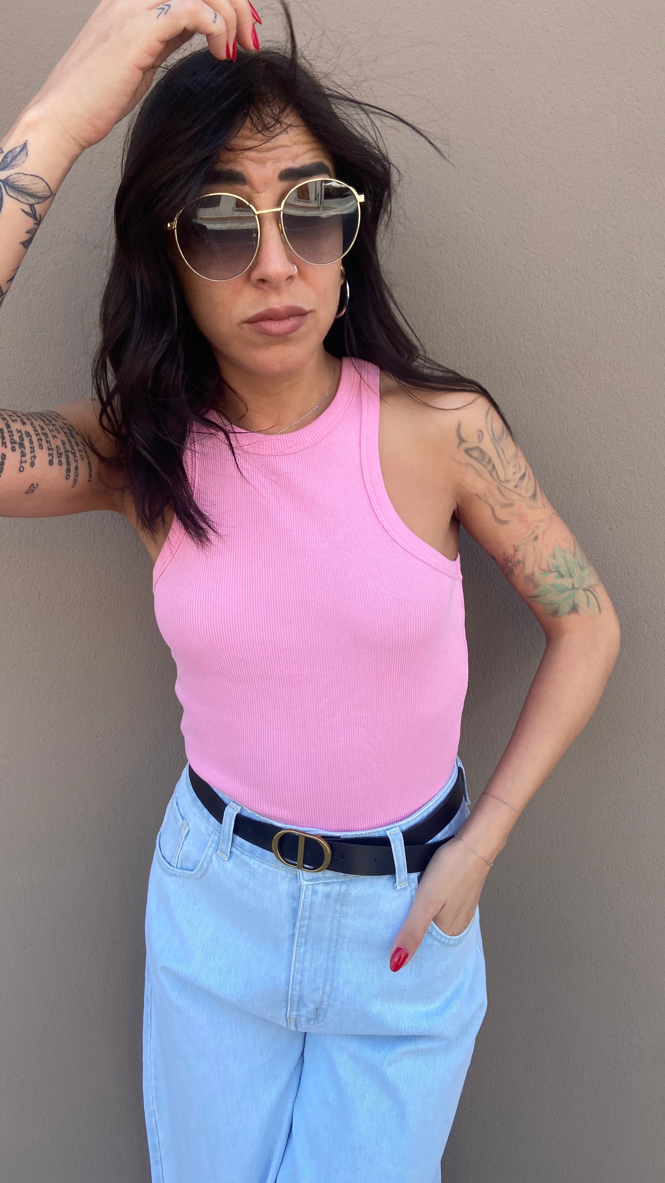 CANOTTA A COSTINE FINE  COTONE ELASTICIZZATO MIS UNICA MODELLO A VOGATORE  COLORE ROSA NUOVI ARRIVI