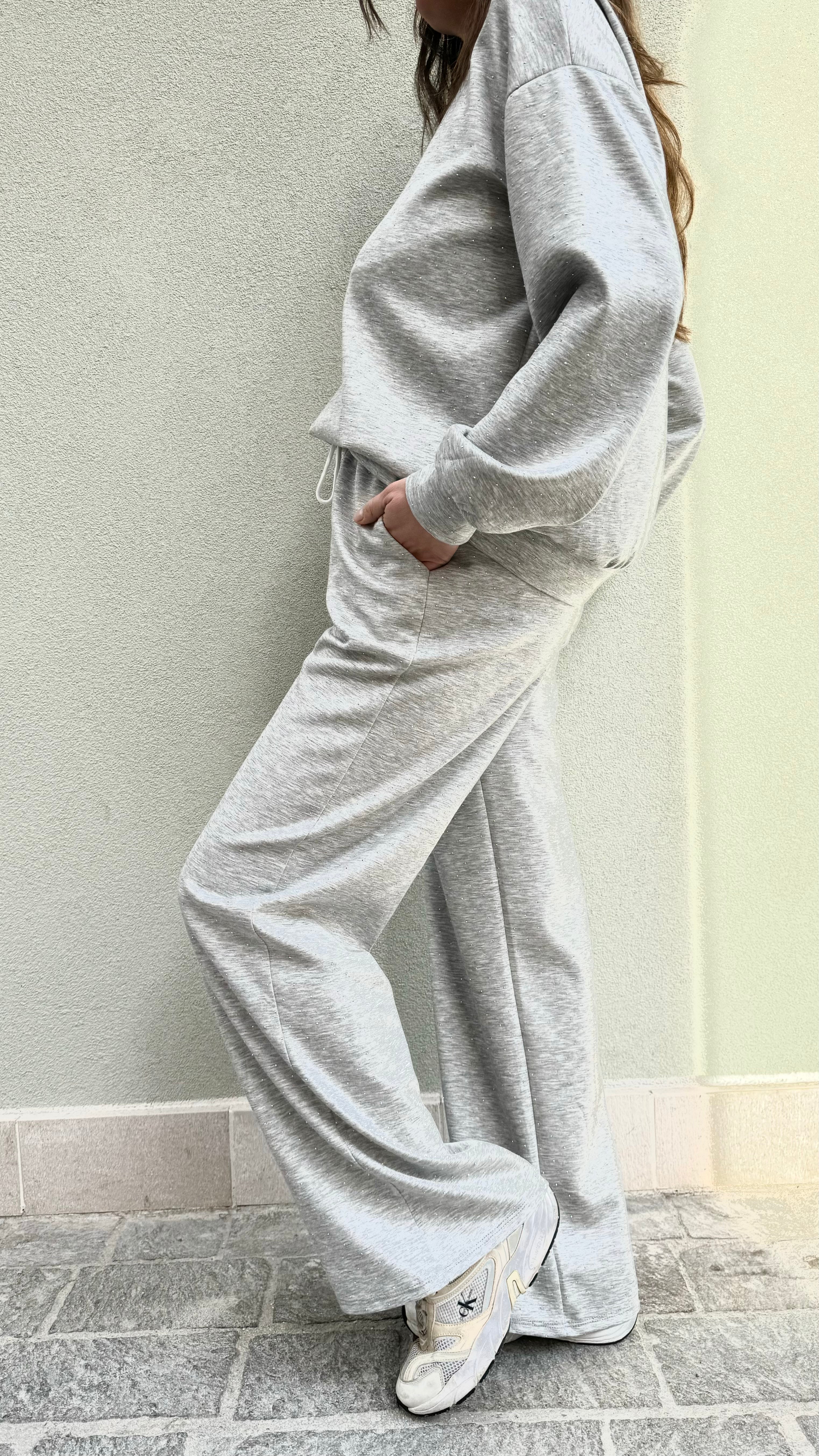COORDINATO FELPA E PANTALONE  FELPA A SCATOLA MODELLO A GIROCOLLO  PANTALONE A PALAZZO CON ELASTICO IN VITA  TESSUTO VISCOSA POLIESTERE E ELASTENE LUNGHEZZA PANTALONE 110  IL COMPLETO E' MISURA UNICA...