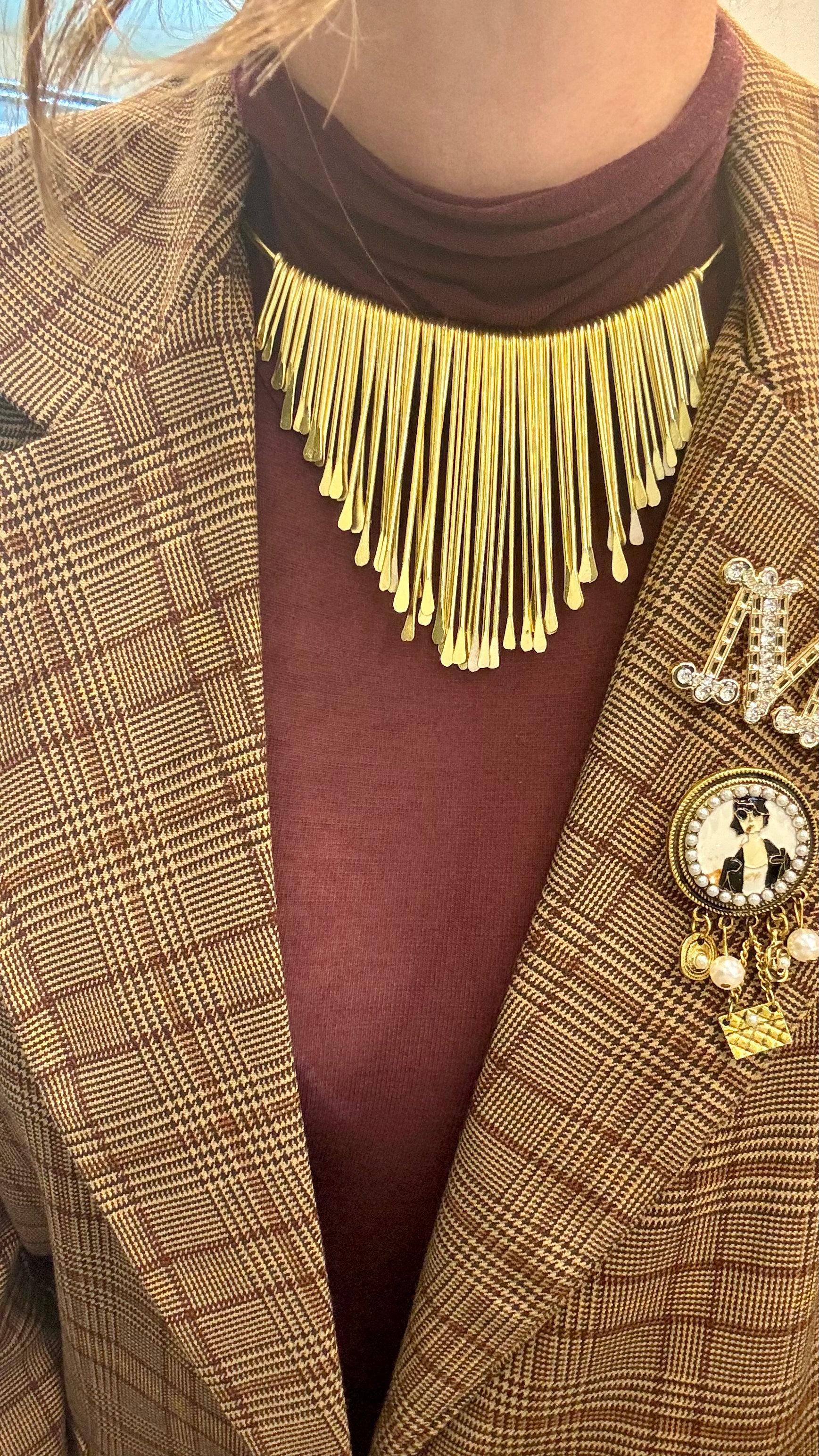 GIROCOLLO FRANGE  CON PUNTE STILIZZATE MATERIALE OTTONE MODELLO REGOLABILE EFFETTO GRINTOSO E MODERNO LAVORAZIONE ARTIGIANALE  NICKEL TESTED  COLLANA LEGGERISSIMA MADE IN ITALY 100%
