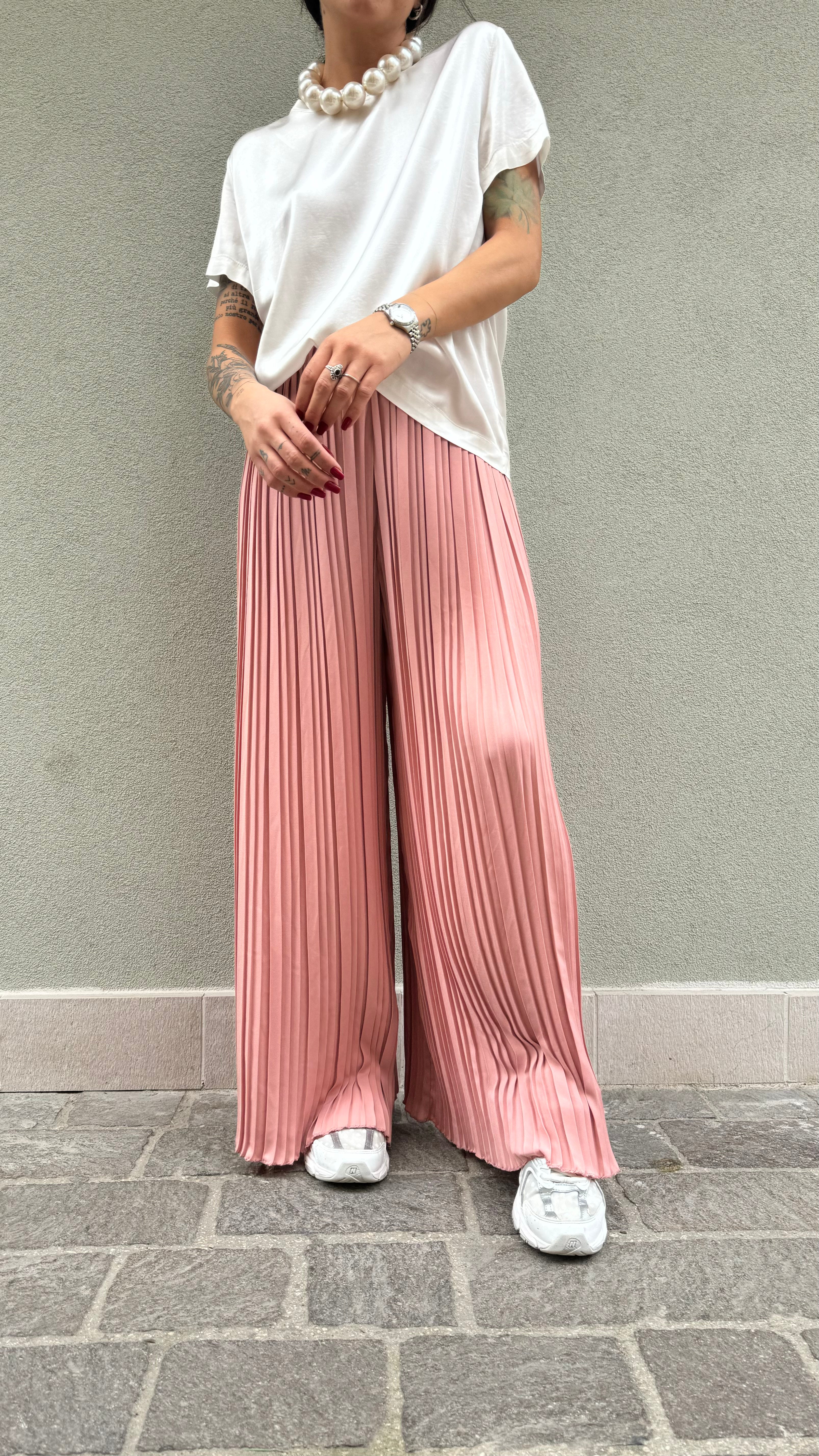 PANTALONE PLISSETTATO  TESSUTO VISCOSA  COLORE ROSA ELASTICO IN VITA  MODELLO FLUIDO E FRESCO  MIS UNICA  MIS LUNGHEZZA 103 CM VITA 38 MASSIMA ESTENSIONE 90  IL PANTALONE VESTE DALLA 40 ALLA...