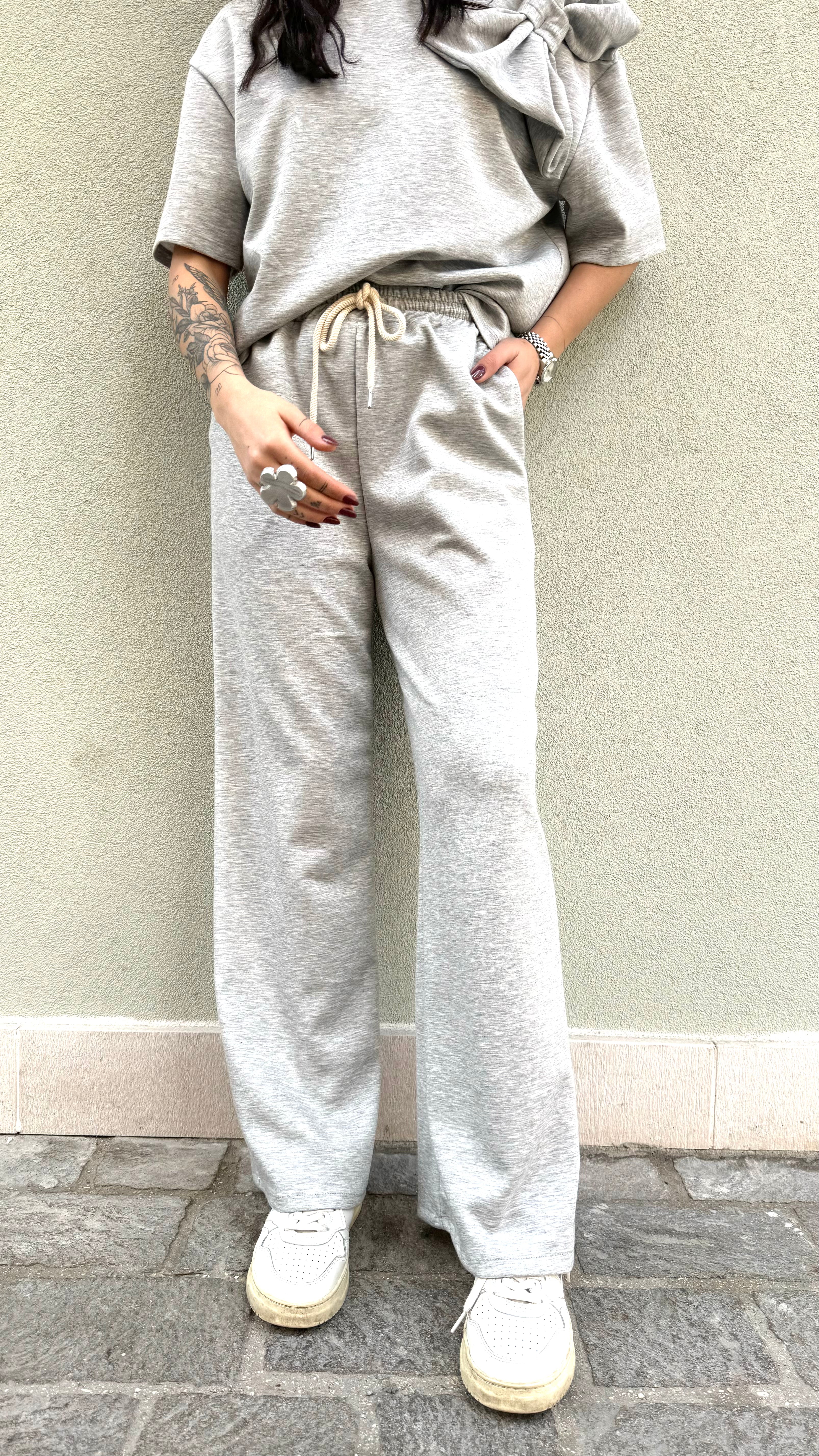 SET COMPOSTO DA FELPA E E PANTALONE FELPA MANICHE CORTE CON FIOCCO CUCITO SUL LATO  PANTALONE PALAZZO CON ELASTICO IN VITA  MIS UNICA  VESTIBILITA' COMODA  TESSUTO COTONE SOFT  MIS FELPA...