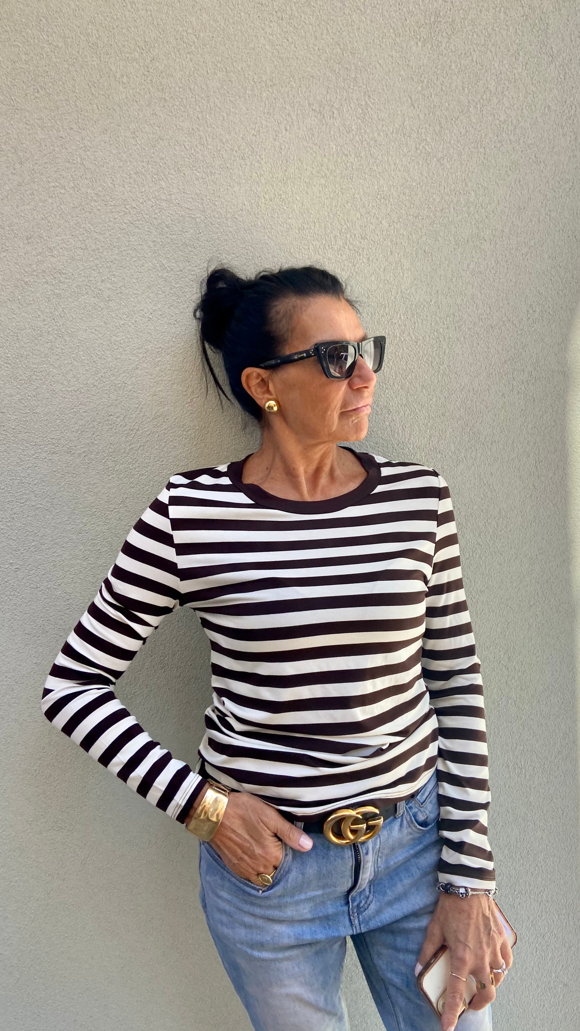 T-SHIRT MONICA RIGA BIANCA E CIOCCOLATO