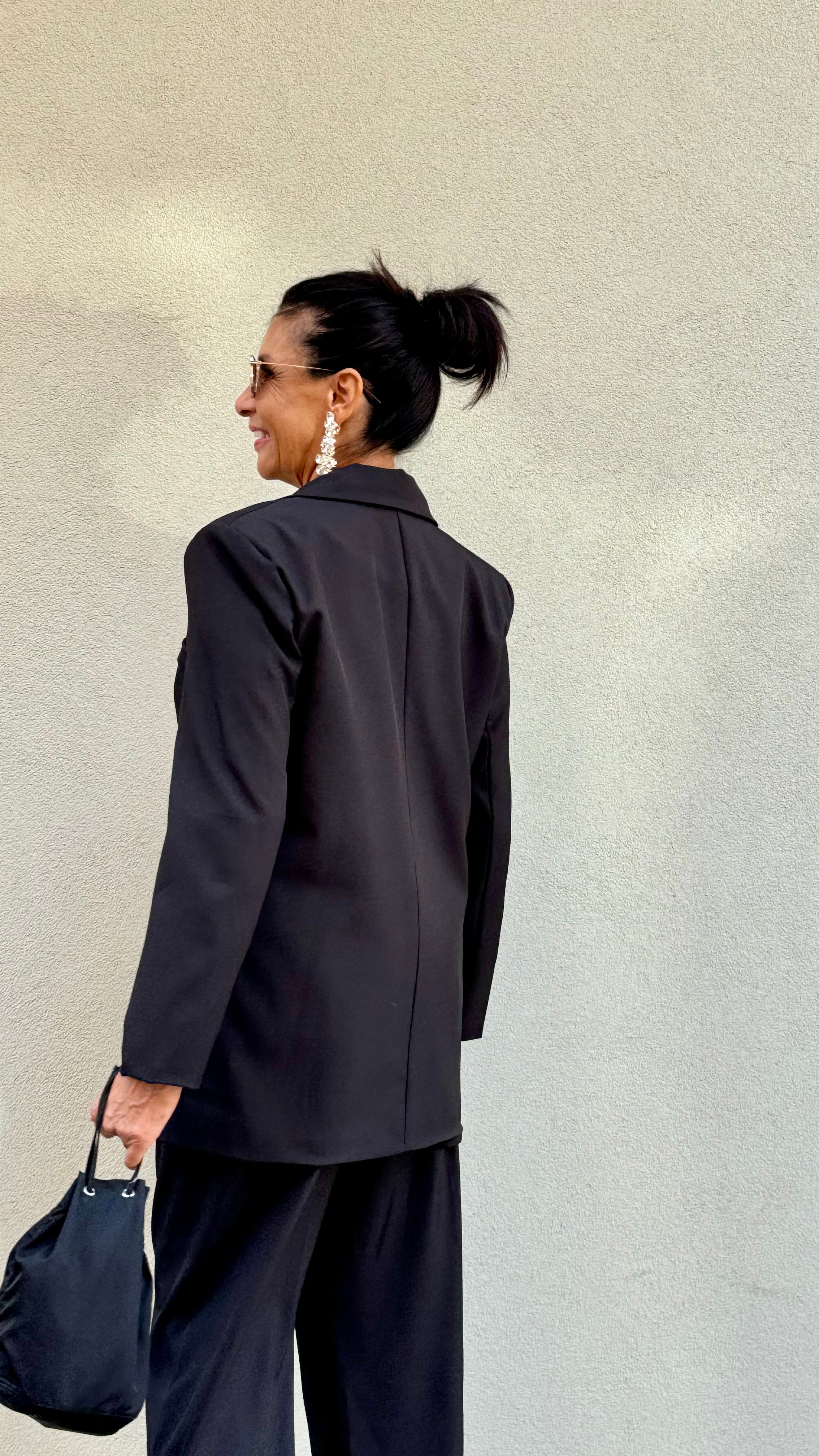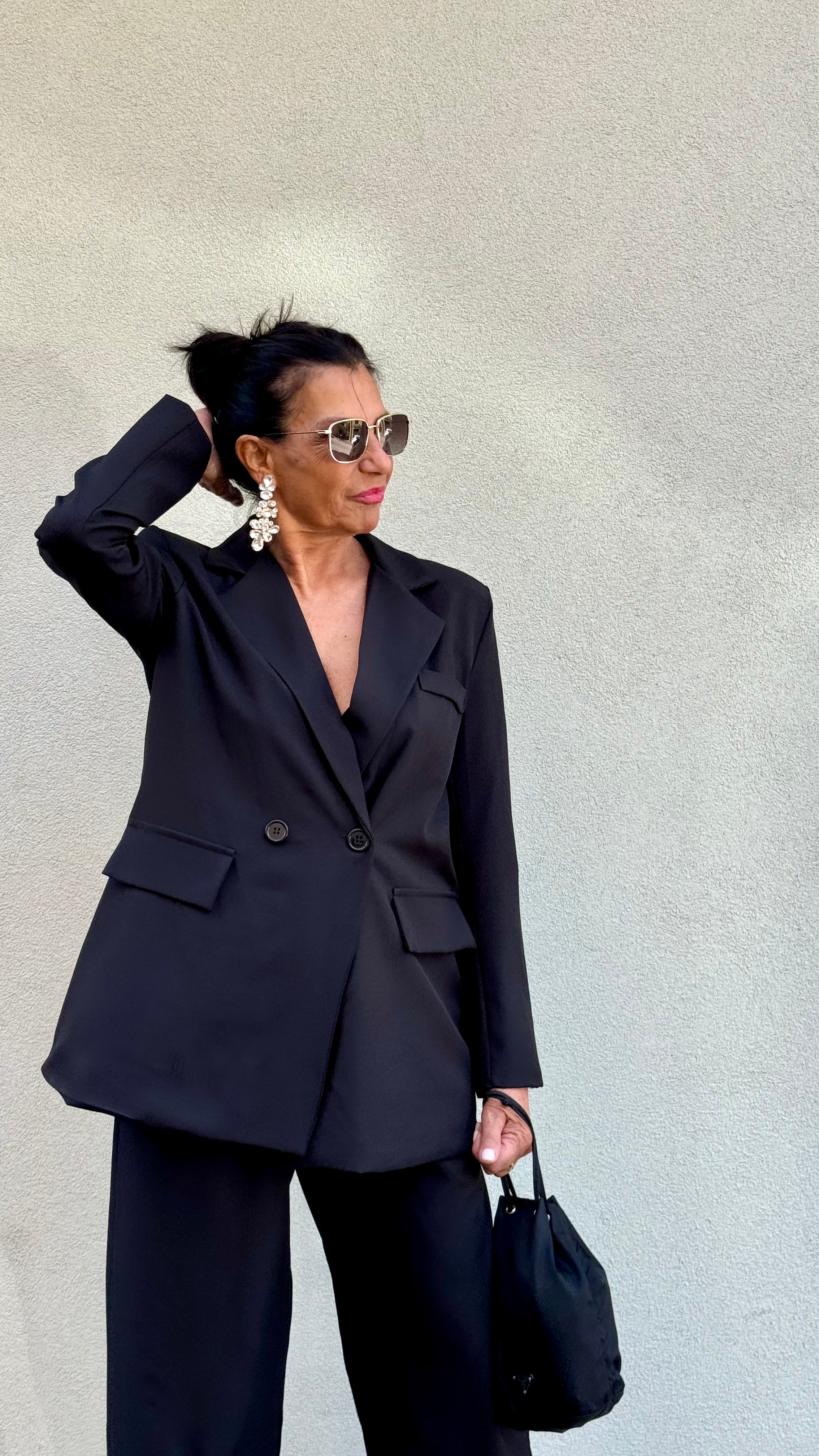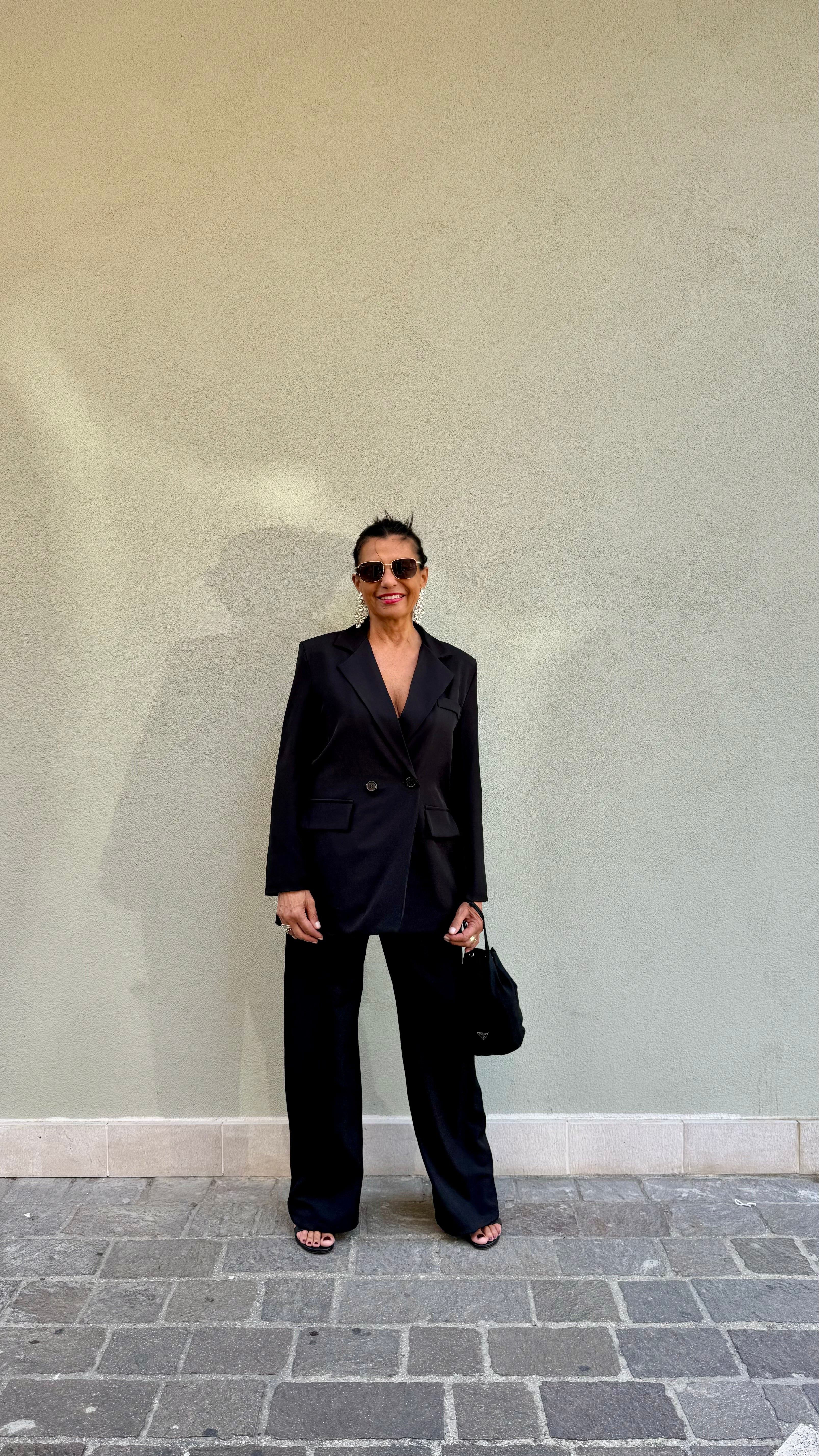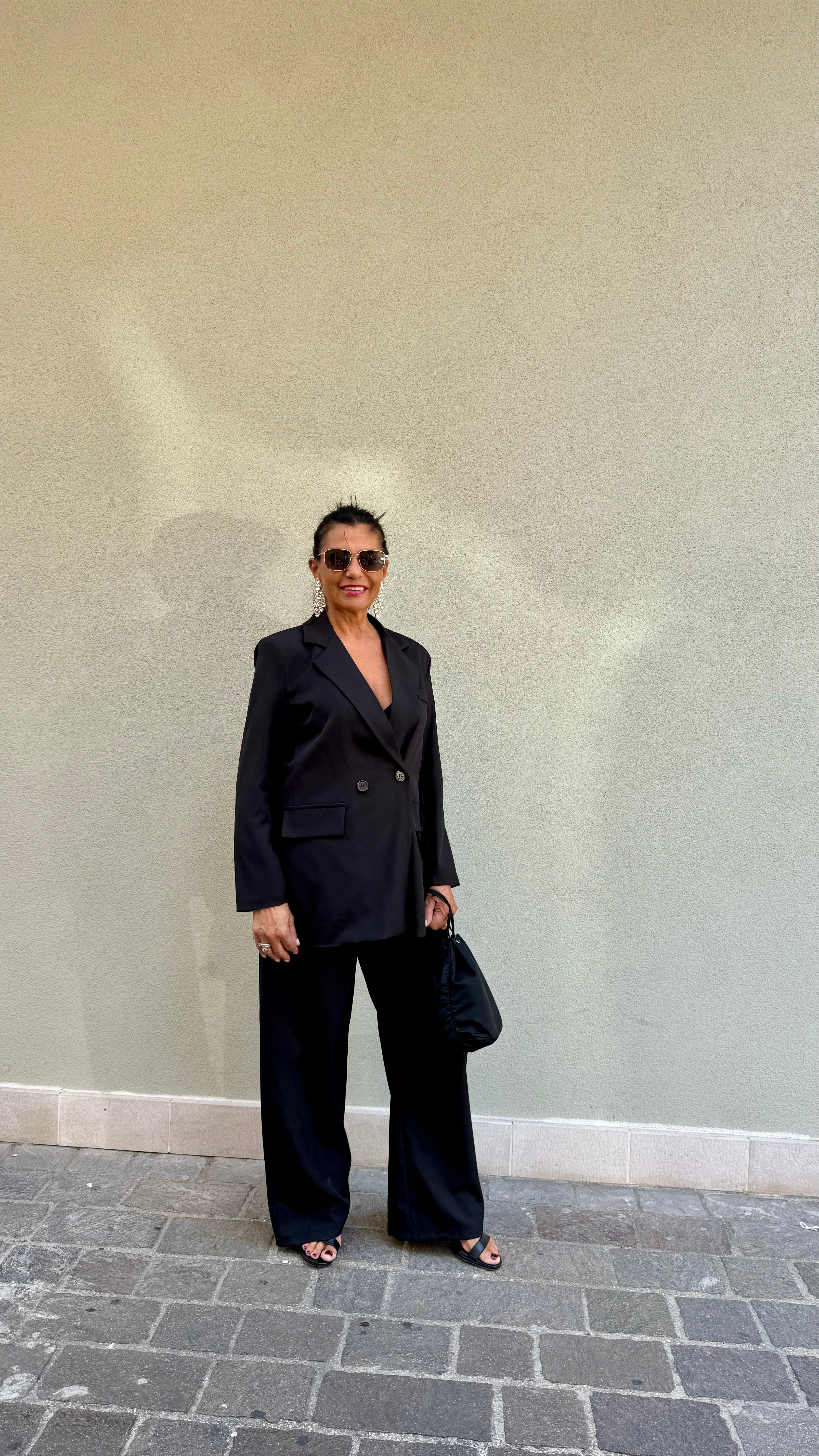 GIACCA E PANTALONE  MIS UNICA  TESSUTO VISCOSA  GIACCA  CON SPALLINE CHIUSURA DOPPIOPETTO  FODERATA ALL'INTERNO  LUNGHEZZA 70 CM SPALLA 40 CM  PANTALONE LEGGERMENTE A PALAZZO  CHIUSURA CON ZIP E BOTTONE ELASTICO...