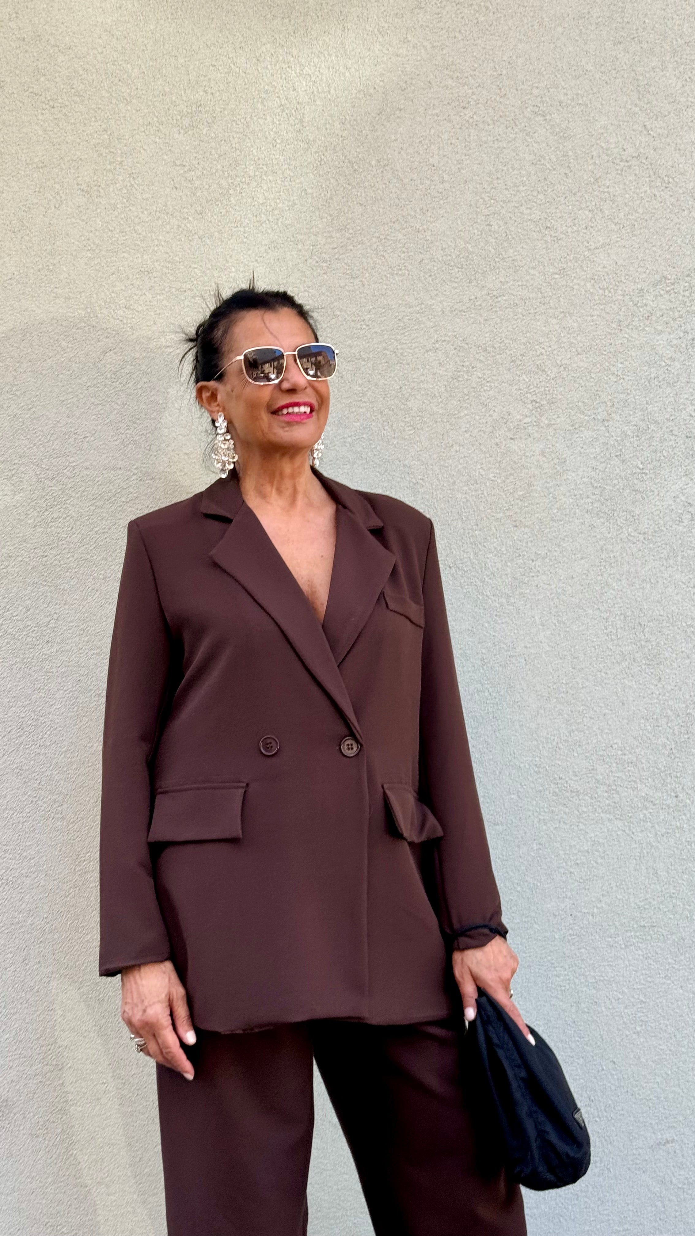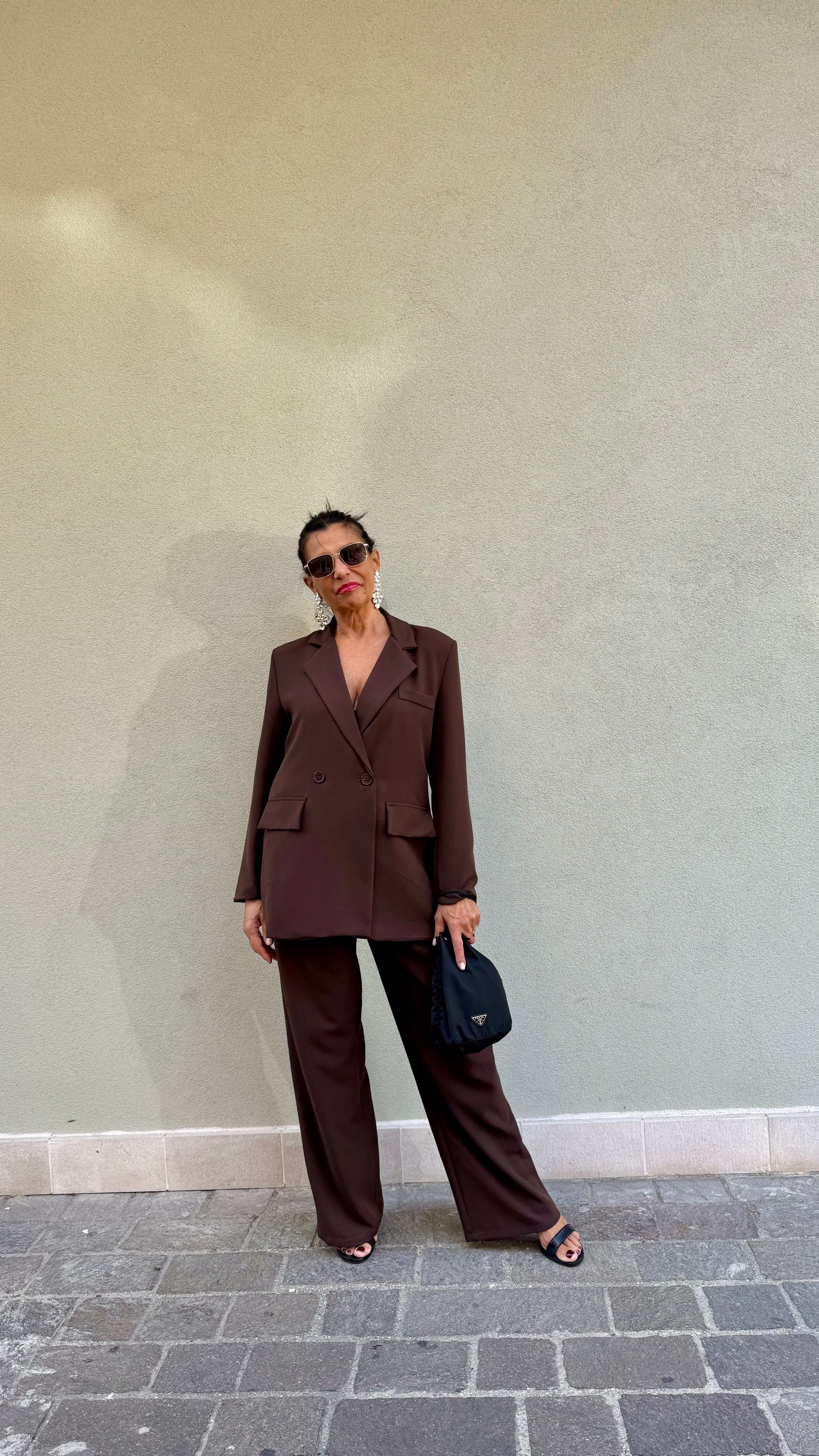 GIACCA E PANTALONE  MIS UNICA  TESSUTO VISCOSA  GIACCA  CON SPALLINE CHIUSURA DOPPIOPETTO  FODERATA ALL'INTERNO  LUNGHEZZA 70 CM SPALLA 40 CM  PANTALONE LEGGERMENTE A PALAZZO  CHIUSURA CON ZIP E BOTTONE ELASTICO...