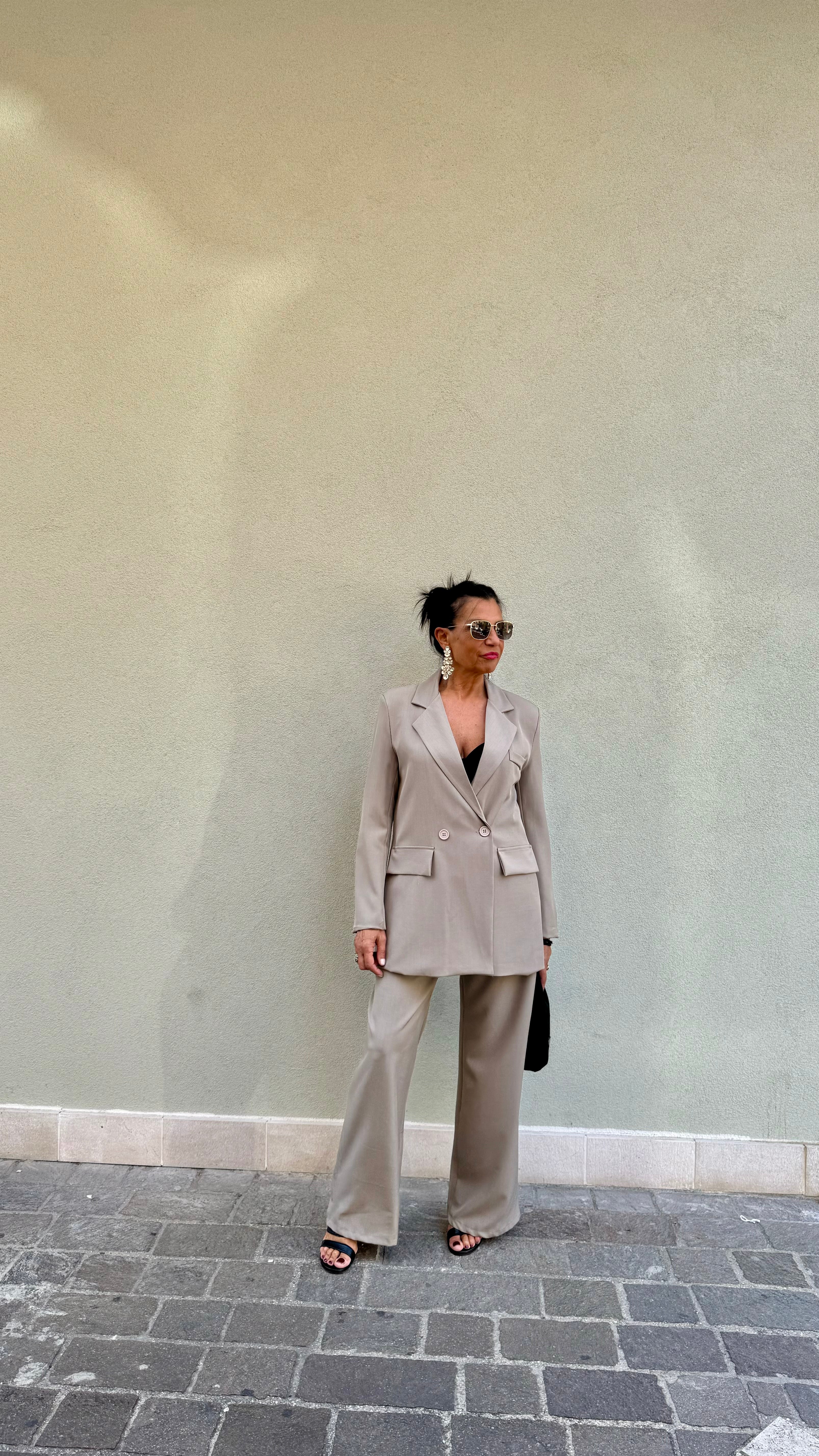 GIACCA E PANTALONE  MIS UNICA  TESSUTO VISCOSA  GIACCA  CON SPALLINE CHIUSURA DOPPIOPETTO  FODERATA ALL'INTERNO  LUNGHEZZA 70 CM SPALLA 40 CM  PANTALONE LEGGERMENTE A PALAZZO  CHIUSURA CON ZIP E BOTTONE ELASTICO...