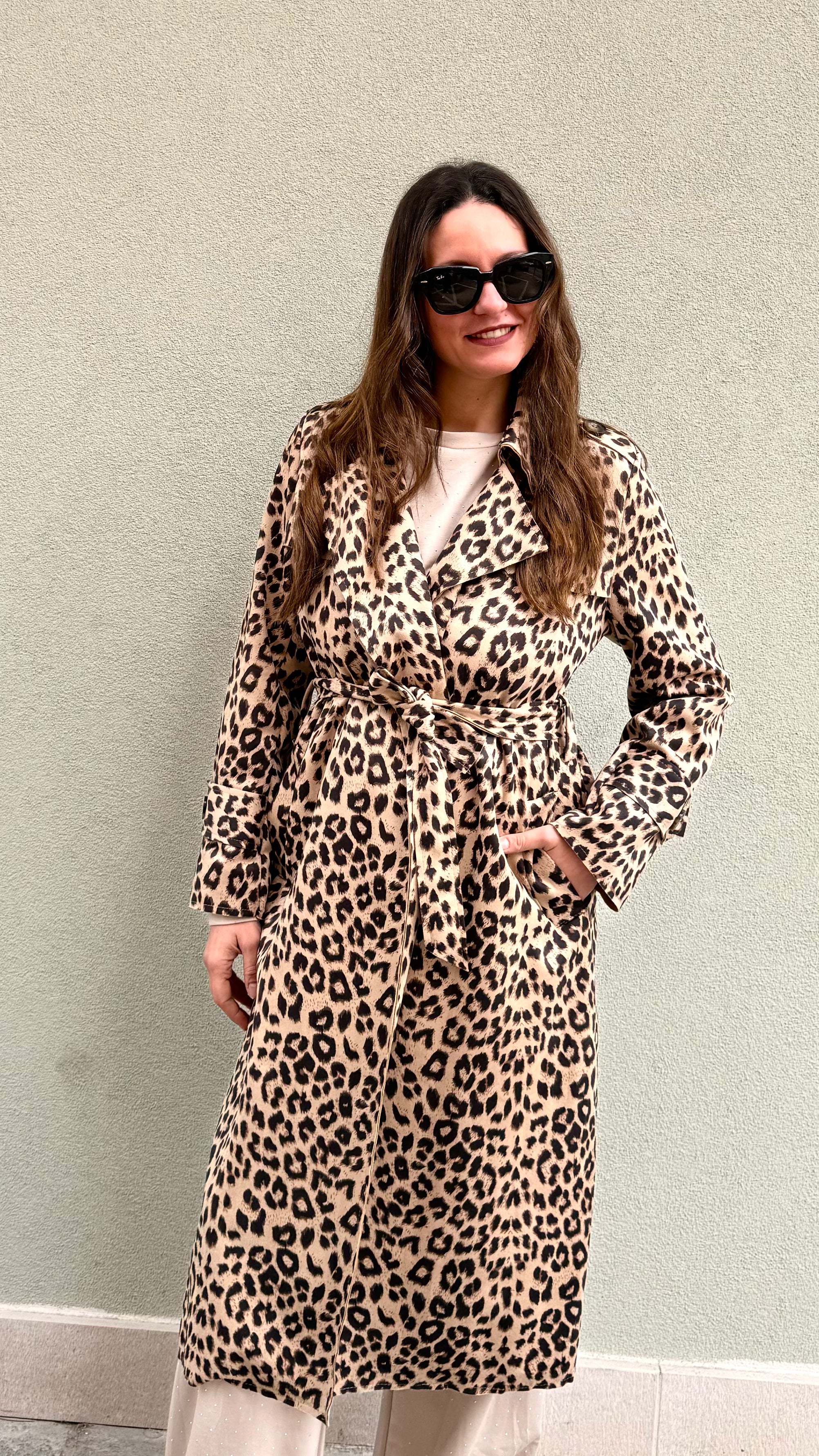 TRENCH MACU  MODELLO SFODERATO  CHIUSURA MONOPETTO CINTA COMPRESA  STAMPA COME IN FOTO MIS UNICA LUNGHEZZA 126 CM   TESSUTO POLIESTERE  IL TRENCH VESTE FINO ALLA 48 LA MODELLA IN FOTO VESTEUNA...